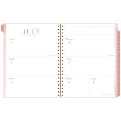 - The weekly spreads provide unruled daily blocks for capturing your plans your way, while a separate week-spanning block accommodates anything that doesn't fit neatly into any one day