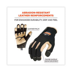 - Abrasion-resistant leather reinforcements on the padded palm, fingertips and thumb saddle provide enhanced grip and feel