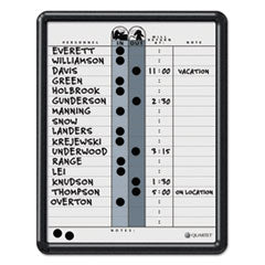 - Comprehensive personnel board tracks in/out status and notes for up to 18 employees on an ultra-durable, ultra-smooth DuraMax® porcelain surface that will not scratch, dent, stain or ghost