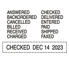 - Stamp Type: Message Dater; Message(s): 12 Common Business Phrases; Ink Types: Self-Inking; Impression Width: 2.25".