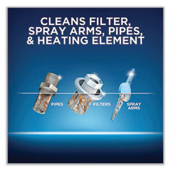 - Cleans filter, spray arms, pipes and heating element