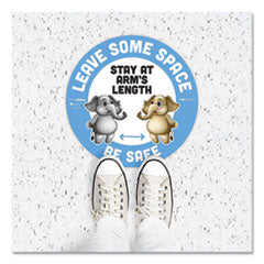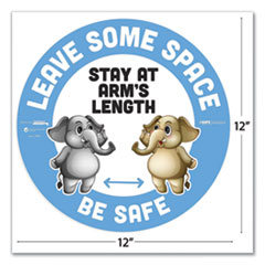 - Size: 12" dia; Message(s): Leave Some Space; Stay At Arms Length; Be Safe; Material(s): Vinyl; Width: 12".