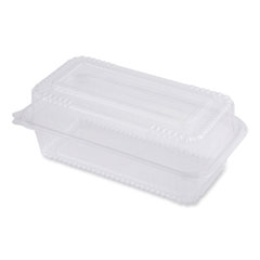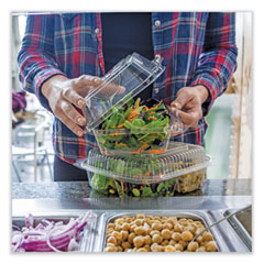 - Food Container Type: Hinged Lid Container; Material(s): PLA; Material Type: Plastic; Interior Volume Capacity: 46 oz.