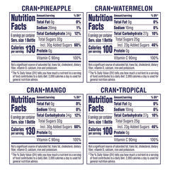 - bottles of Cran Tropical Cranberry Tropical Juice Drink, Cran Pineapple Cranberry Pineapple Juice Drink, Cran Mango Cranberry Mango Juice Drink, and Cran Watermelon Cranberry Watermelon Juice Drink