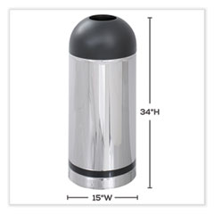 - The chrome and black finish waste receptacle has a 15-gal bin and is recommended for indoor use only