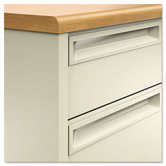 - High-sided file drawers extend fully and accept hanging files without hang rails; box drawers extend three-quarters