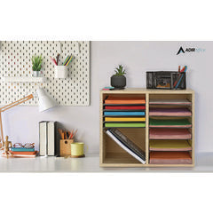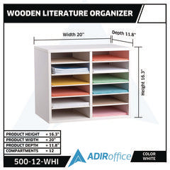 Wood Adjustable 12 Compartment Literature Organizer