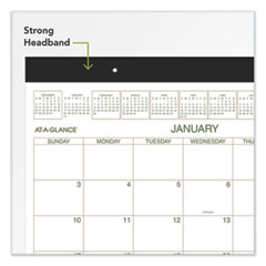 - One month per page format has unruled daily blocks for open scheduling and a full year of reference calendar blocks