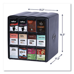 - Width: 15.2"; Depth: 17.2"; Height: 16.3"; Compartments: 12.