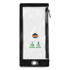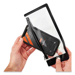 - The included phone pouch features a clear, touchscreen-compatible face, reinforced tarpaulin sides, a zipper-closure and a steel grommet attachment ring