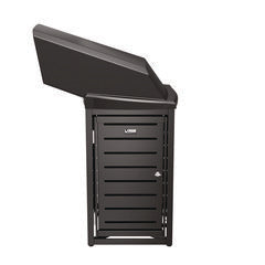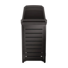 - This can is constructed with a durable steel frame and slatted panels that are made to withstand the elements of the outdoors