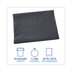 Variant: 60 gal, 1.1 mil, 38" x 58", Gray, Flat Pack, 100/Carton
