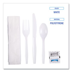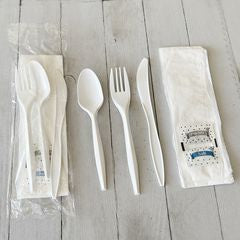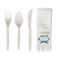 Variant: Mediumweight, Fork/Knife/Napkin/Pepper/Salt/Spoon, 5.86", Plastic, White, 250/Carton