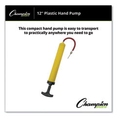 - The Champion Sports 12-inch Plastic Hand Pump keeps you in the game, ready for action anytime, anywhere