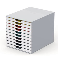 The VARICOLOR® Stackable Plastic Drawer Box from DURABLE® is a versatile storage solution that streamlines your organization and productivity