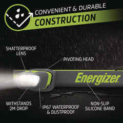 - Energizer Pro Series Multi-color Hybrid Headlamp offers convenient hands-free operation that is 12x brighter than standard LED technology