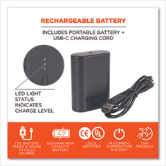 Battery Type: Lithium Ion; Battery Size: 7.2 V; For Use With: Ergodyne N-Ferno 6495 Jacket; Battery Capacity: 5,000 mAh.