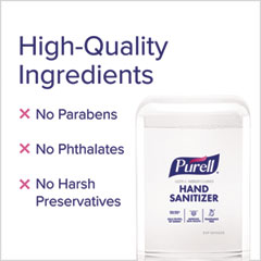 - Free of dyes, triclosan, parabens, phthalates, and preservatives, PURELL hand sanitizer is made with our high-quality ethyl alcohol
