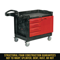 - The utility cart is made from a durable structural foam construction
