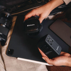 For Device Type: Mobile Devices; Adapter/Charger Type: Universal Travel Adapter; Power Source(s): AC Wall Outlet; Connector/Port/Interface: (2) USB-A; (2) USB-C; Quick Charge 4+.