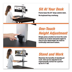 - Transforms any sit-down desk into a sitting OR stand-up desk