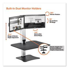 - Holds two monitors up to 27" wide and up to 12.5 lbs each