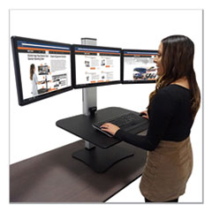 - With the ability to support three monitors up to 23" wide and up to 12.5 lbs each, the 28" wide by 23" deep surface can be raised up to 20" above the desktop for ergonomic placement of monitor, keyboard, mouse, telephone and papers while standing