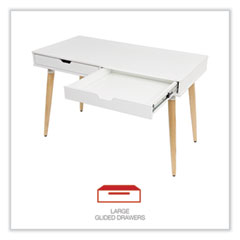 - The desk includes two large, glided drawers which provide optimal storage